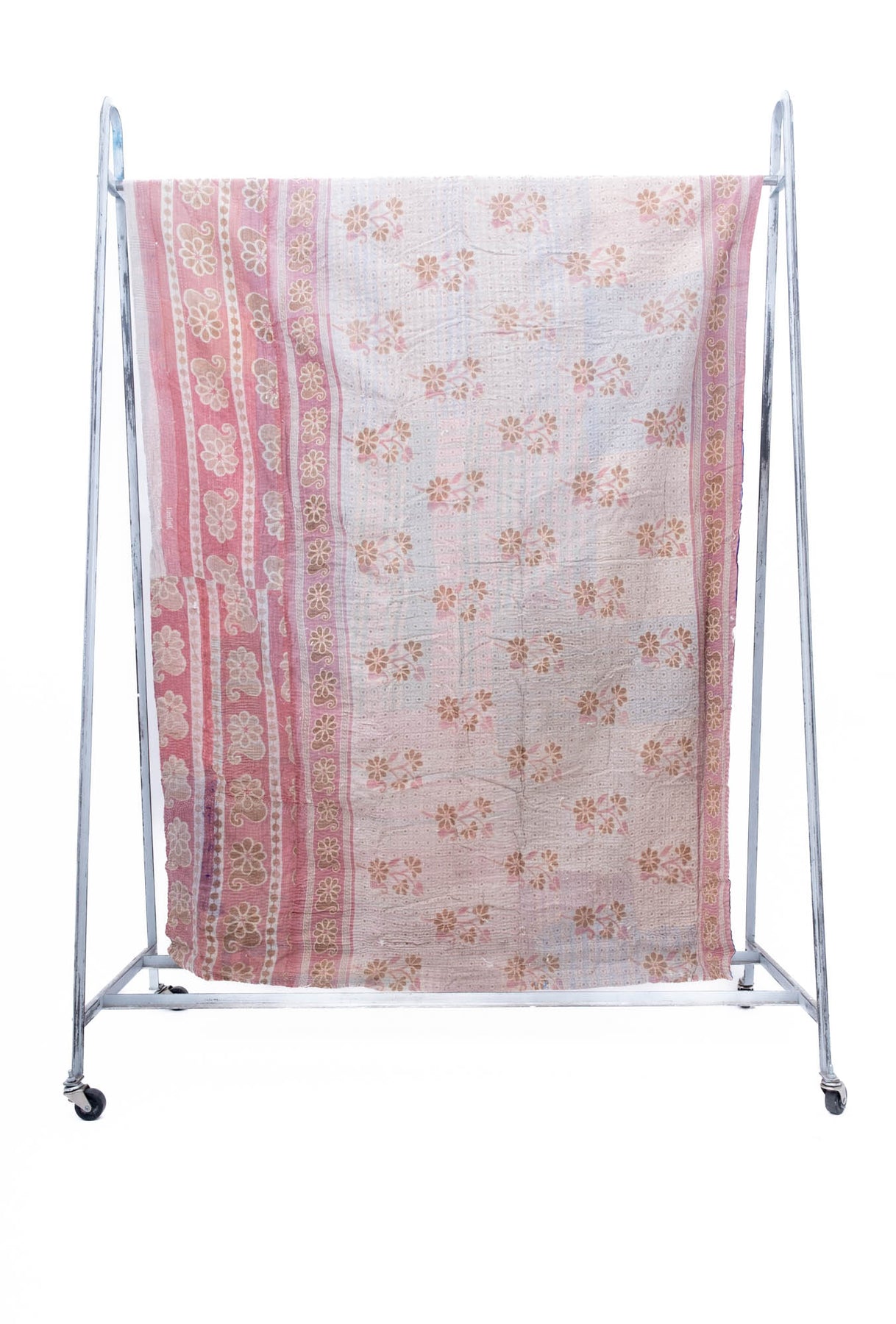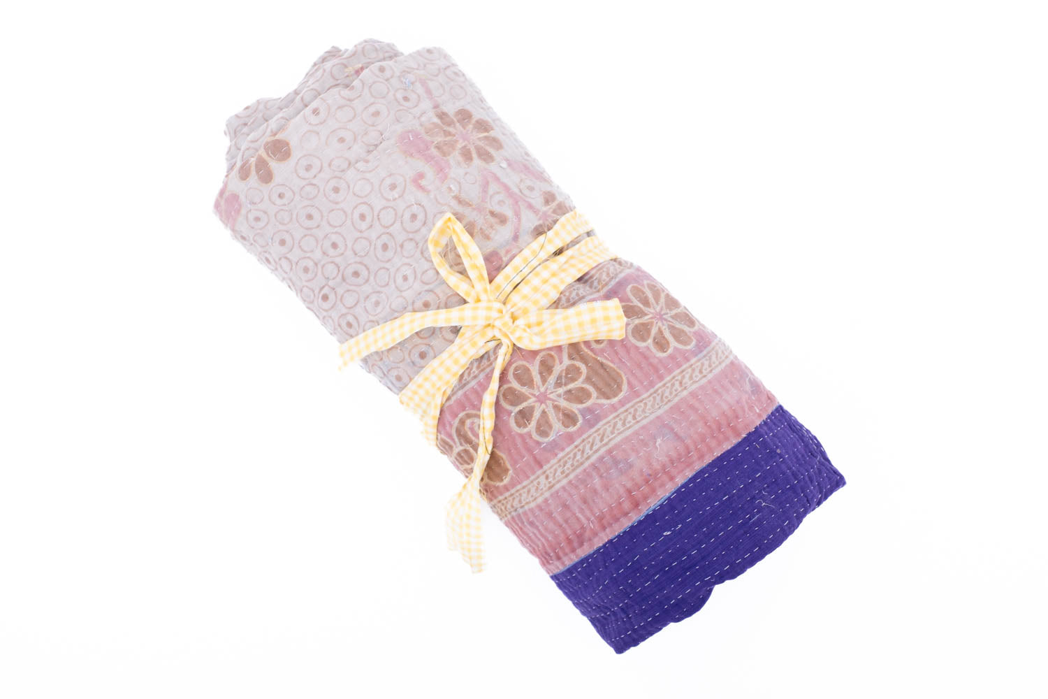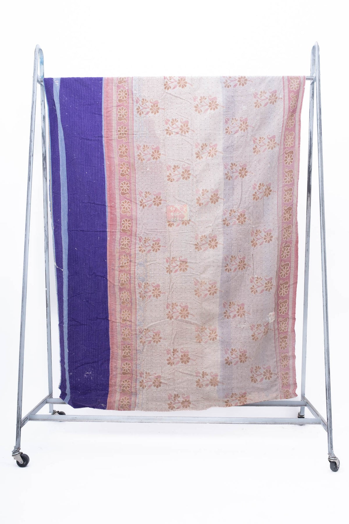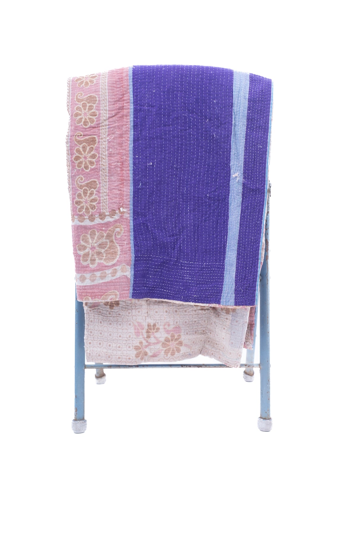 We have sourced these ridiculously charming Kantha quilts from a vintage dealer outside of Delhi. Kantha quilts are made by layering old saree’s and dhotis and stitching the layers with long running stitches that binds it all together. Our Domi Kanthas are super old, they have  amazing patching, fraying and some have a little discoloration.  Every one is a one of a kind hand made treasure.