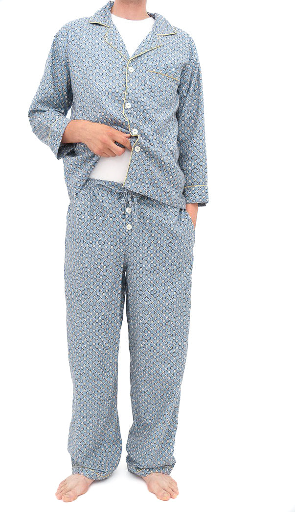 For the man who has everything, including sleep swagger: the Domi Man-Jamas are here. Made from our signature-soft cotton, the elastic-waist pants feature a drawstring and 3-button closure. The long-sleeve top is a classic MJ cut with button-front closure.