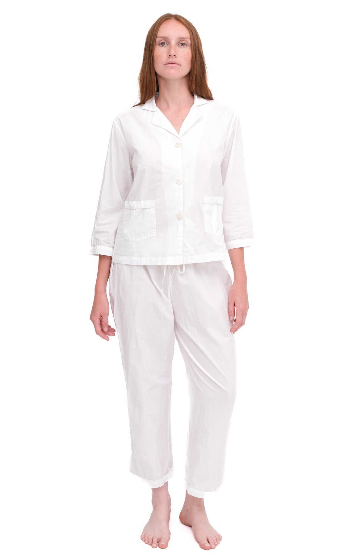This Classic little number has been around since the very beginning. Taking our cues from the guys, we adjusted a little bit here, a little bit there to make it perfect for the girls — slightly shrunken, ¾-sleeve two-pocket top with our loose, low-rise drawstring pant. Loungable and lovable.