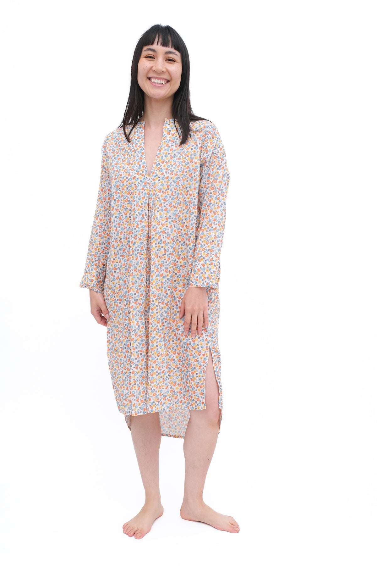 Dream a Domi dream for me. This uber-simple Sleeping Tunic has a simple pleat detail in front and gathered detail in the back. With 3/4-sleeves and mid-calf length, it's definitely in your comfort zone.
