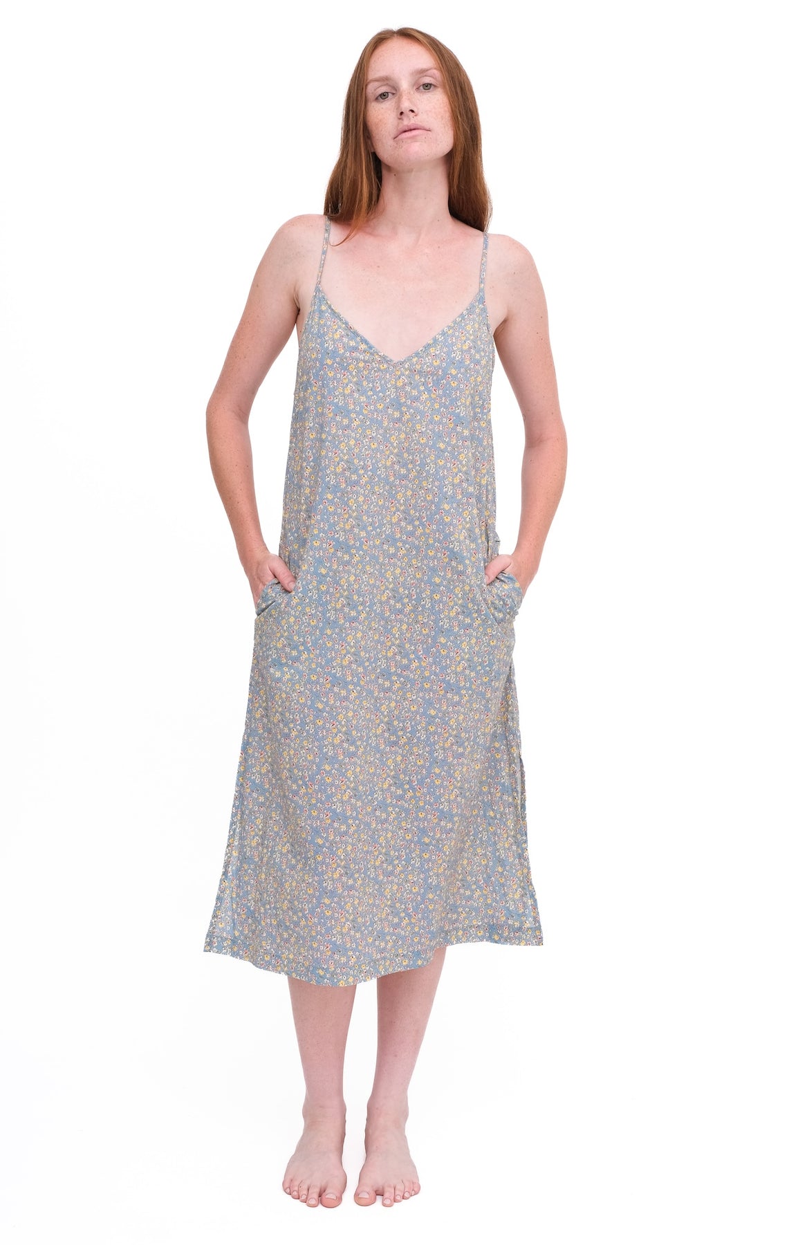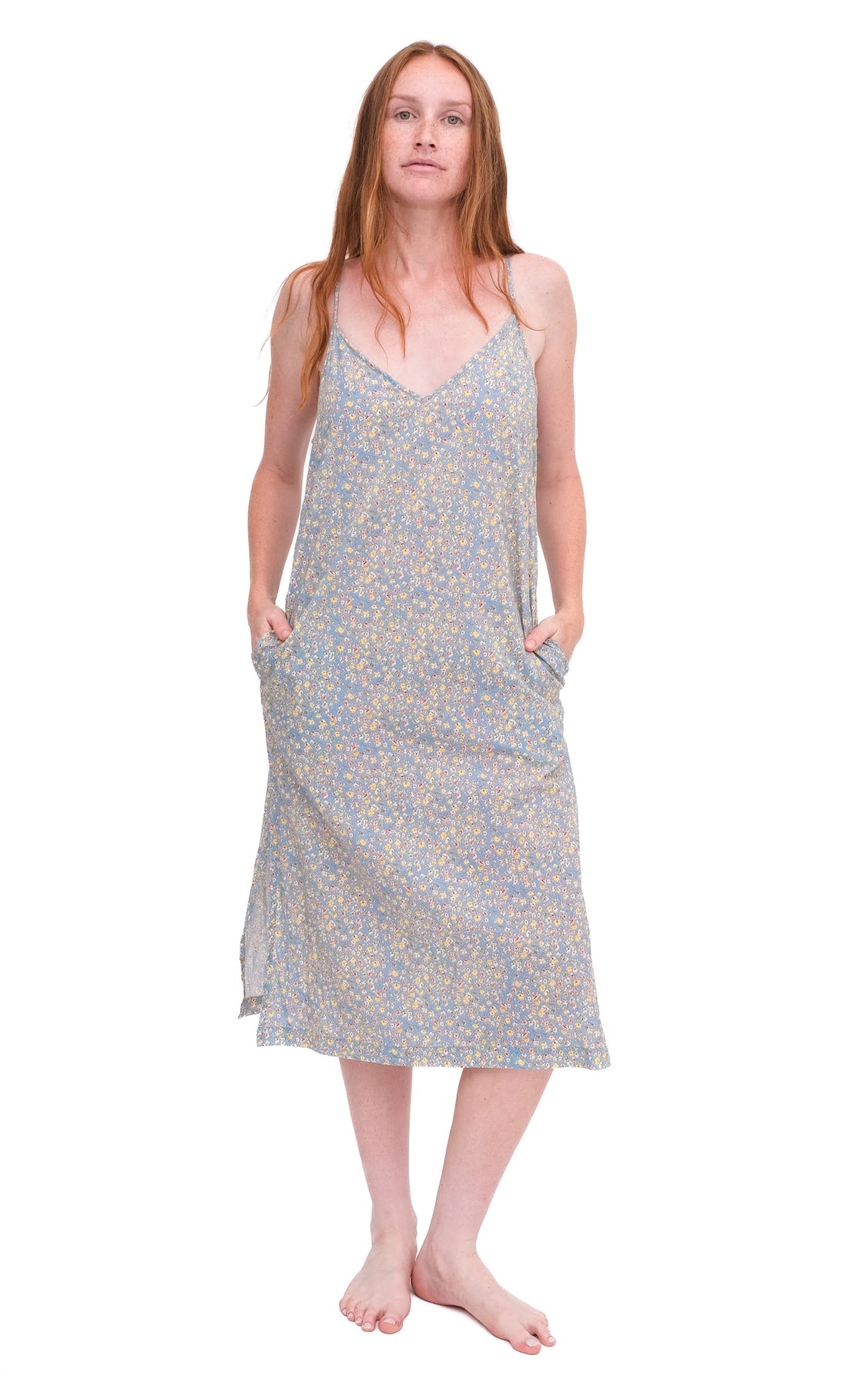 Front V, back V. Domi’s new Double-V Slip is a Very, Very lovely addition to our slip assortment (And yours). Designed with adjustable straps, easy side slits, and side pockets, it hits a hair past the knee for that perfect length: not too short, not too serious.
