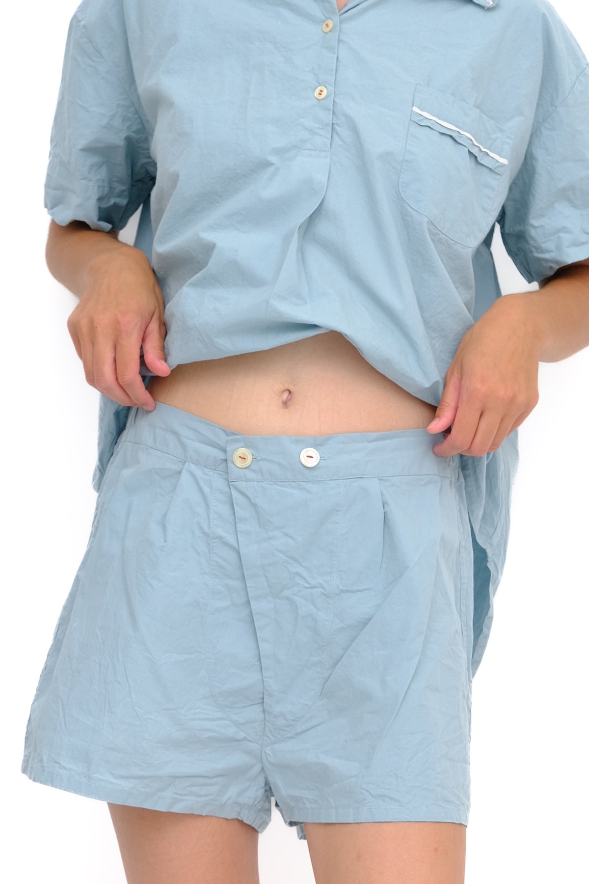 All Domi products are pre washed so shrinking is never a problem. Think before you wash, washing is hard on textiles and on the environment, washing your Domi at low temperatures and line drying is a great way to save measures. Always wash with “like “ colors and should you need to remove a stain use an oxiginated bleach ( we suggest oxy-clean). never chlorine bleach. Always remember to unbutton your buttons before washing, the swish-swish of the machine tugs at the threads.