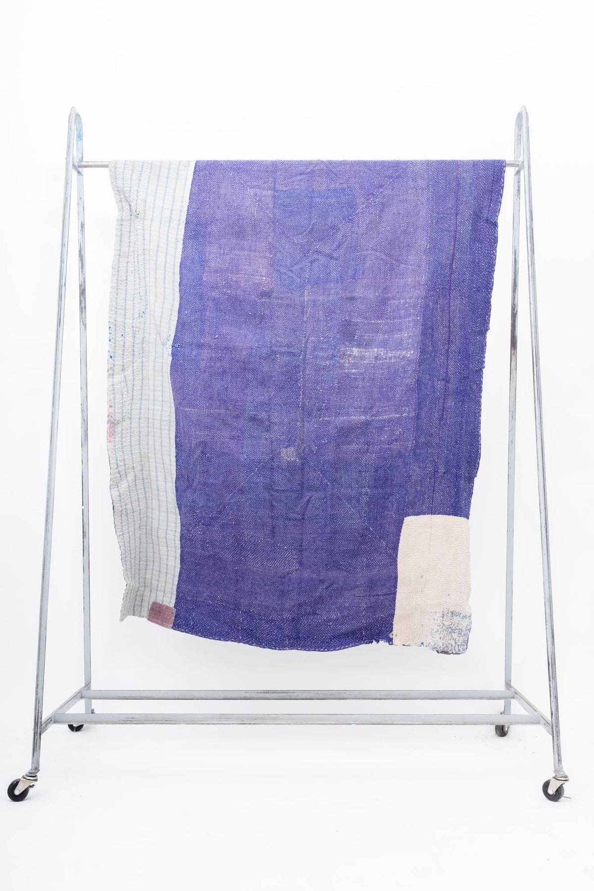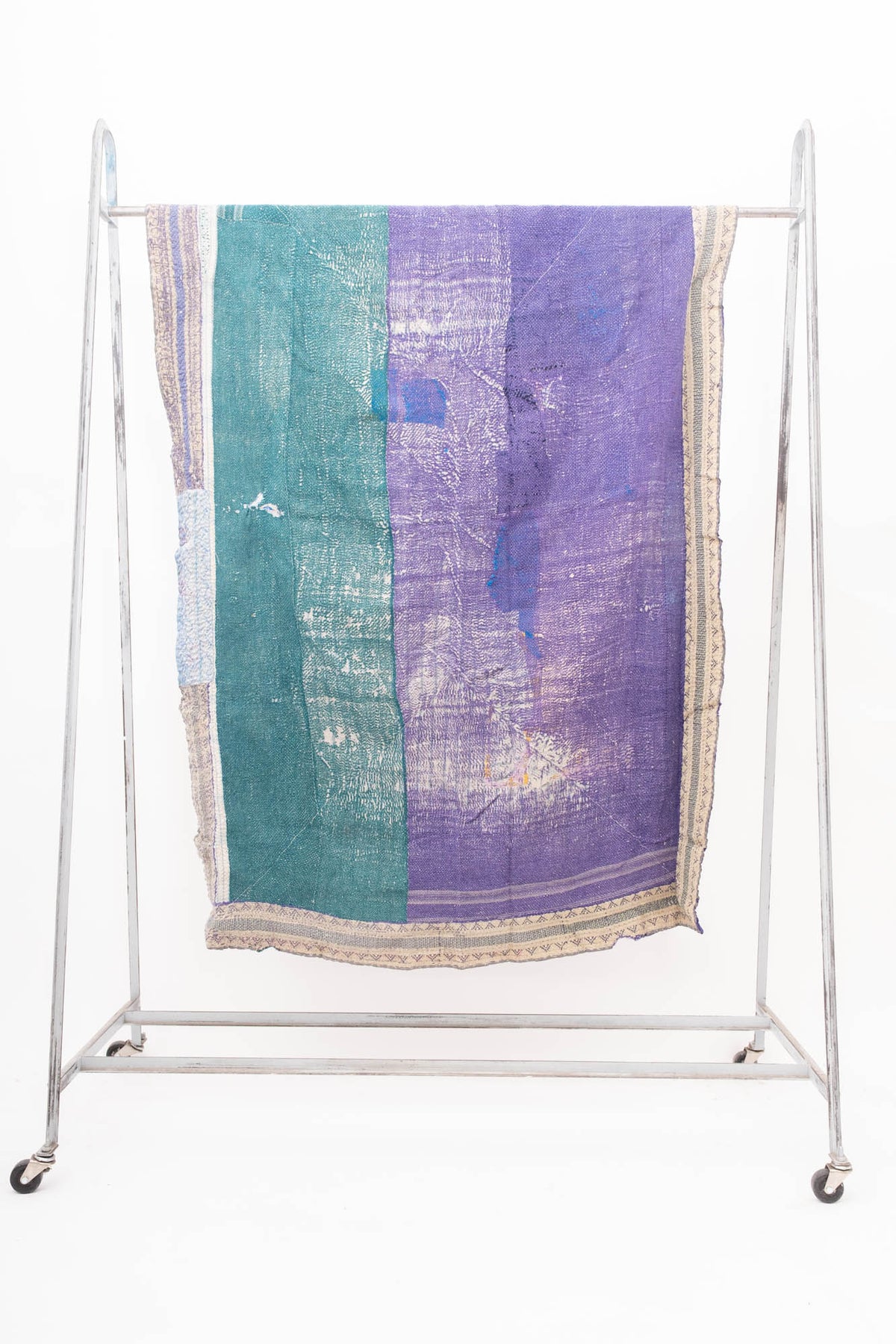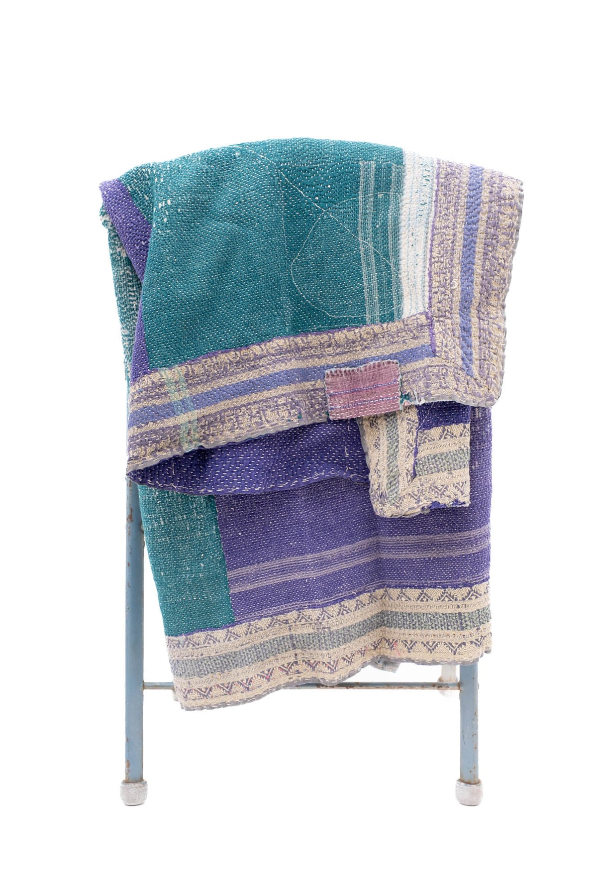 We have sourced these ridiculously charming Kantha quilts from a vintage dealer outside of Delhi. Kantha quilts are made by layering old saree’s and dhotis and stitching the layers with long running stitches that binds it all together. Our Domi Kanthas are super old, they have  amazing patching, fraying and some have a little discoloration.  Every one is a one of a kind hand made treasure.